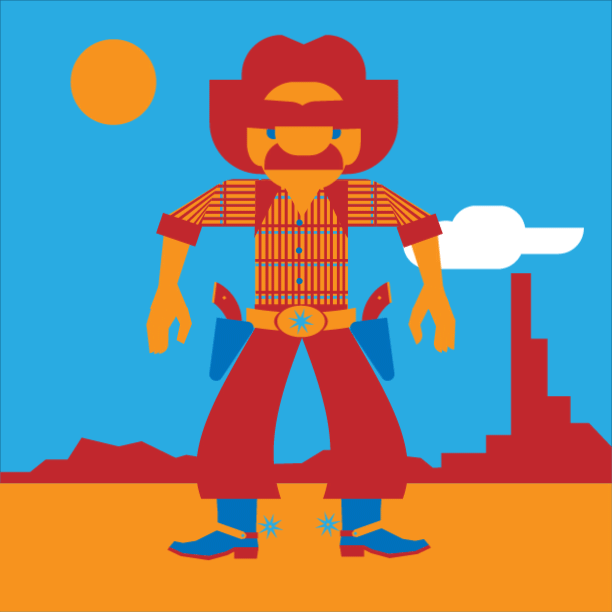 The first ever animation I made! I worked on this last year to practice with after effects, using an illustration of a cowboy I made using a limited color palette and geometric shapes.